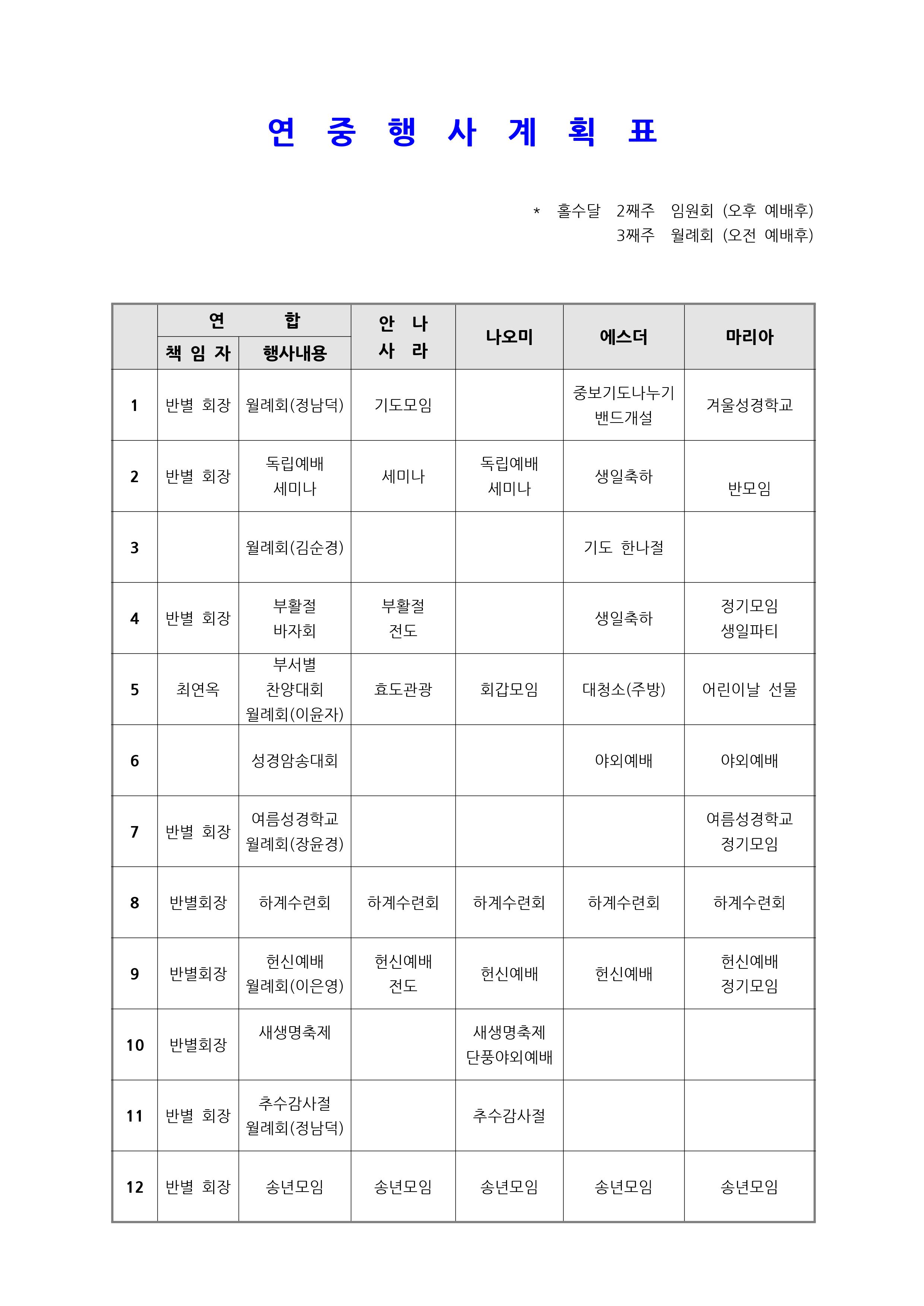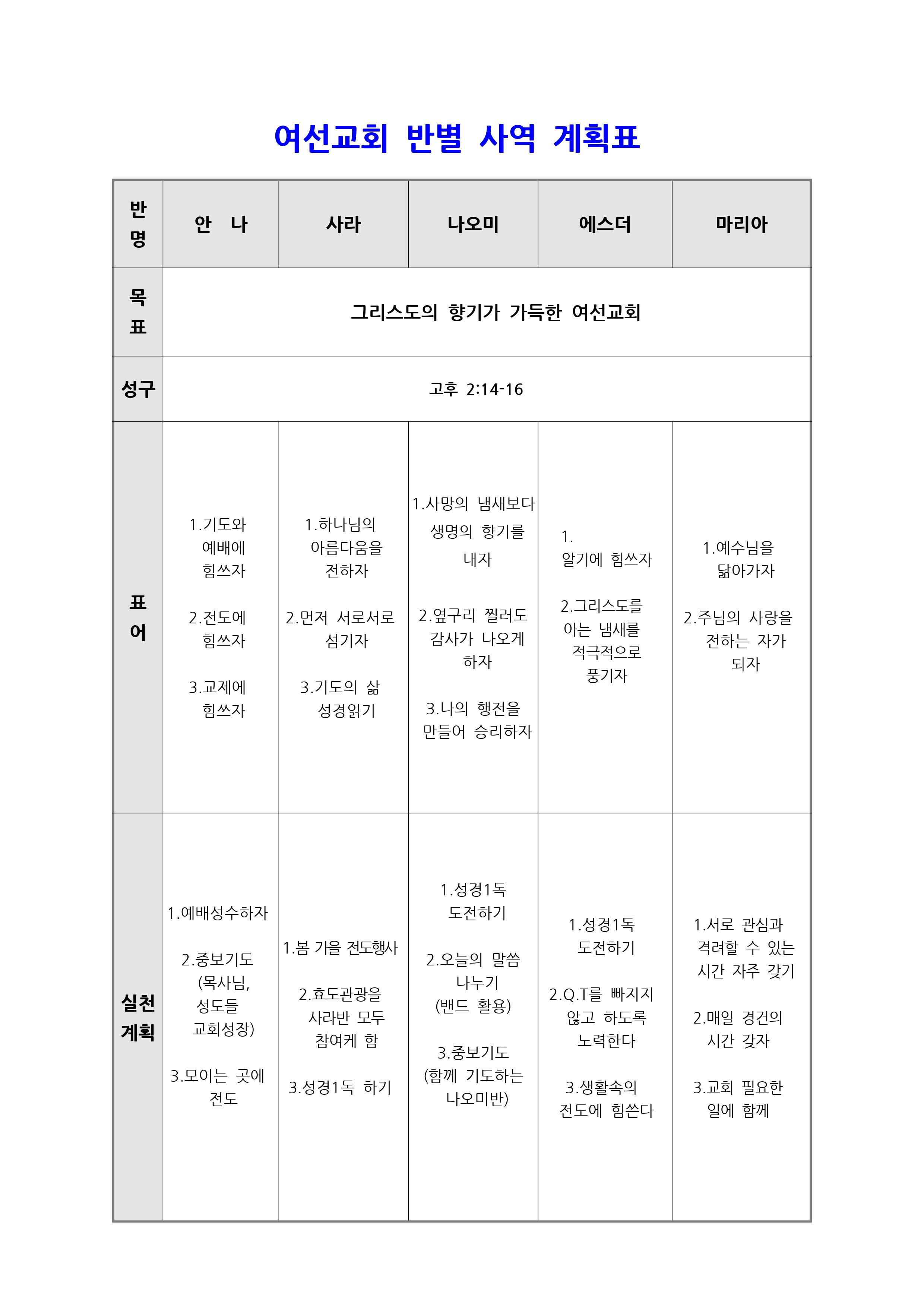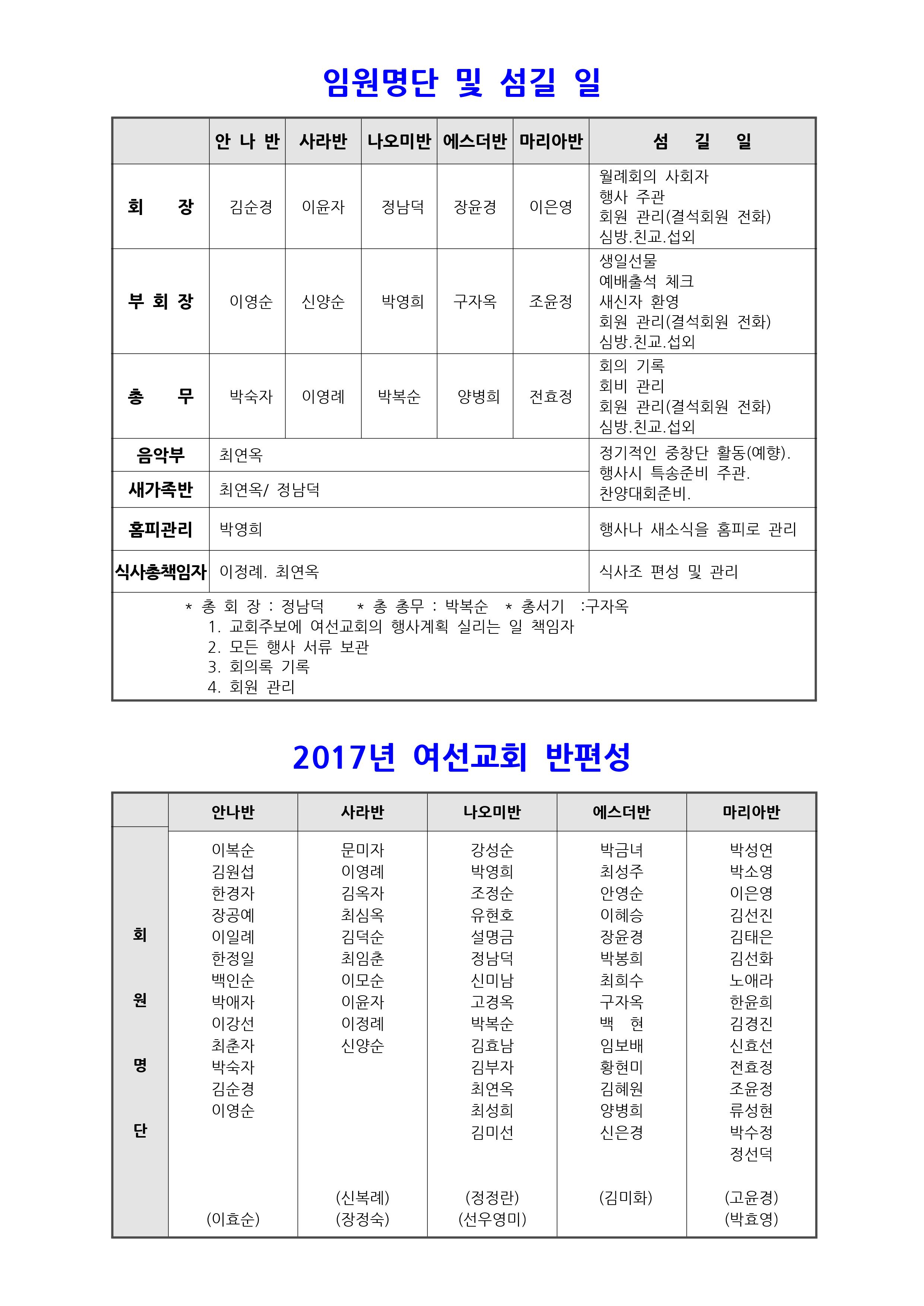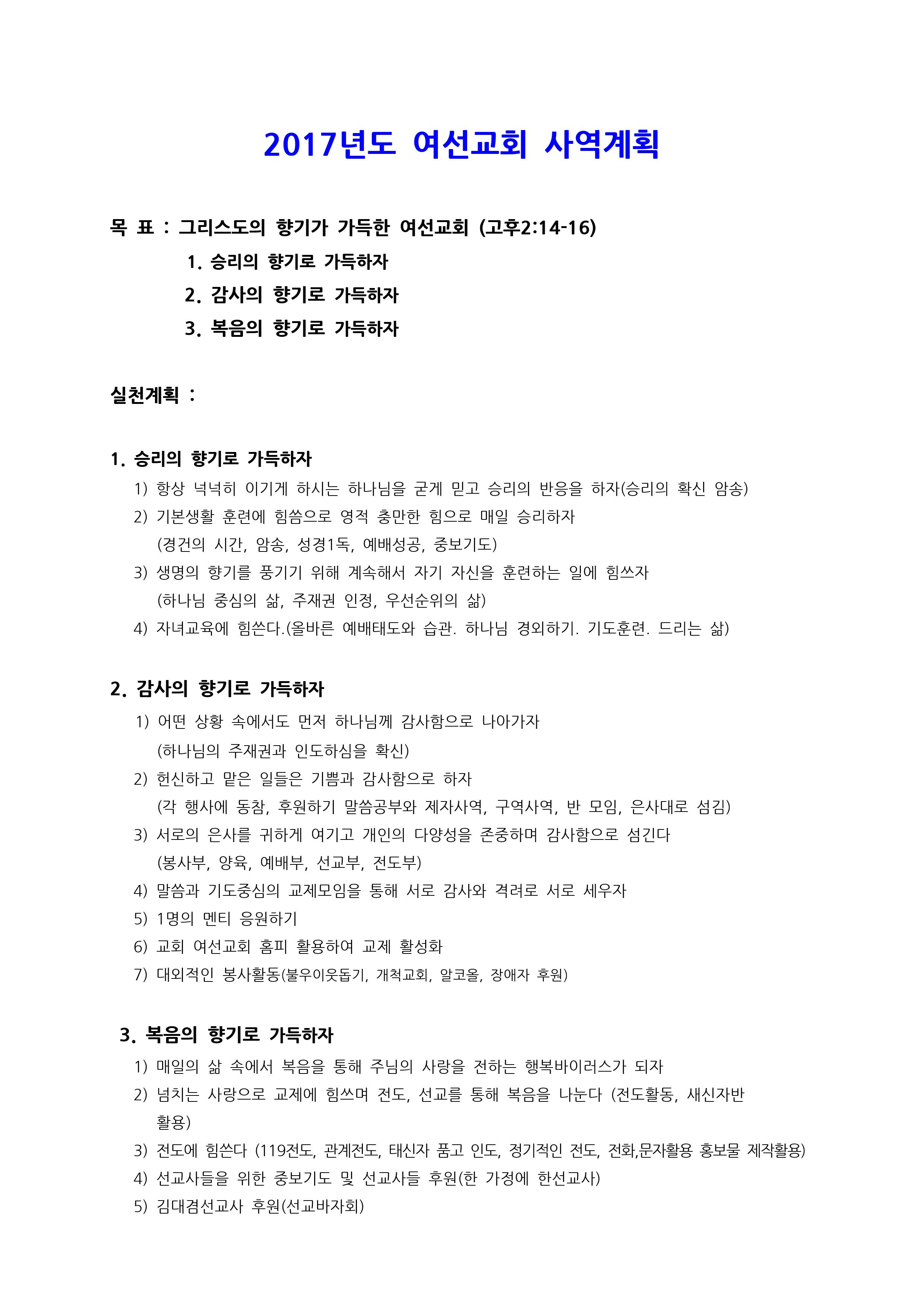 2017년 여선교회 사역계획