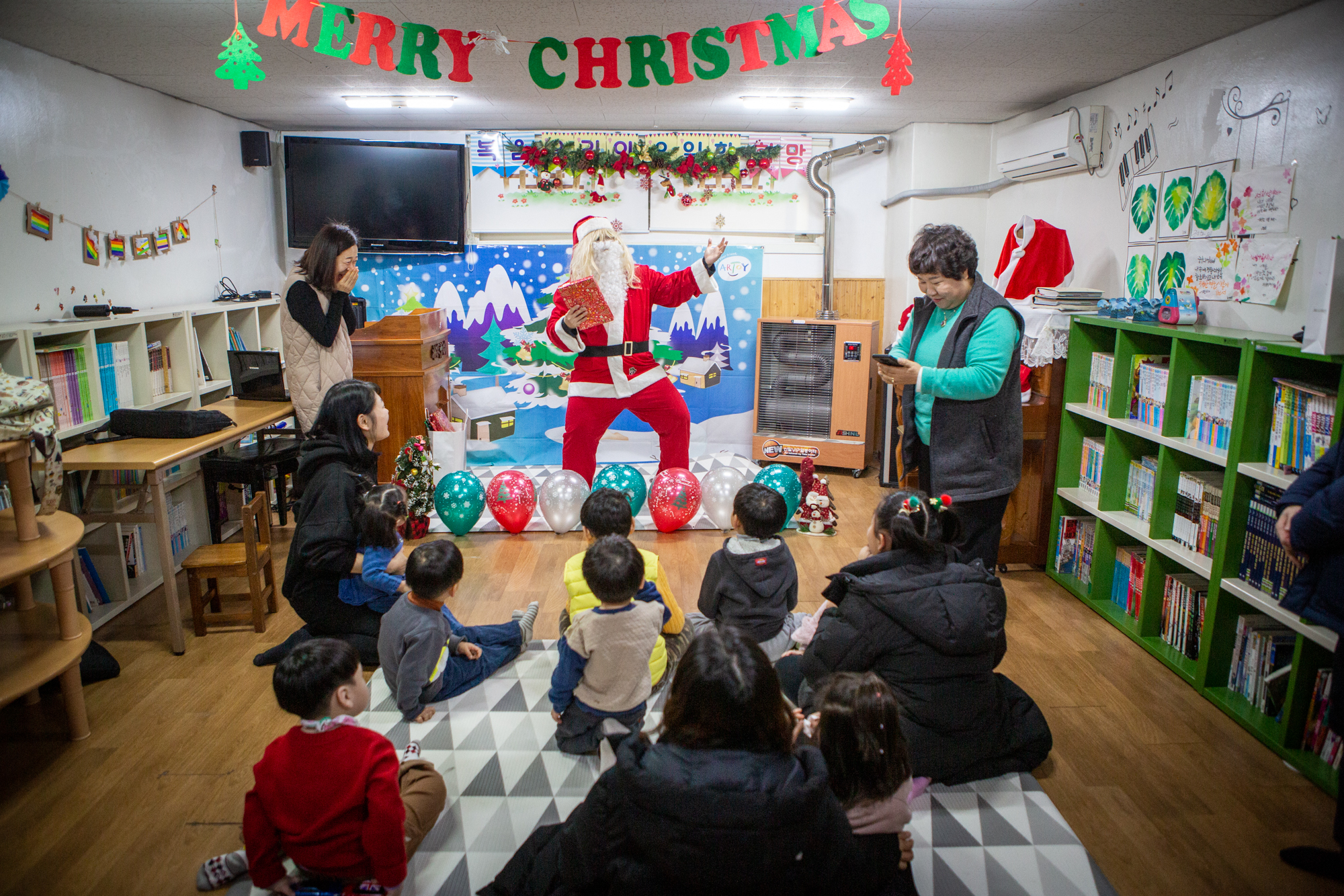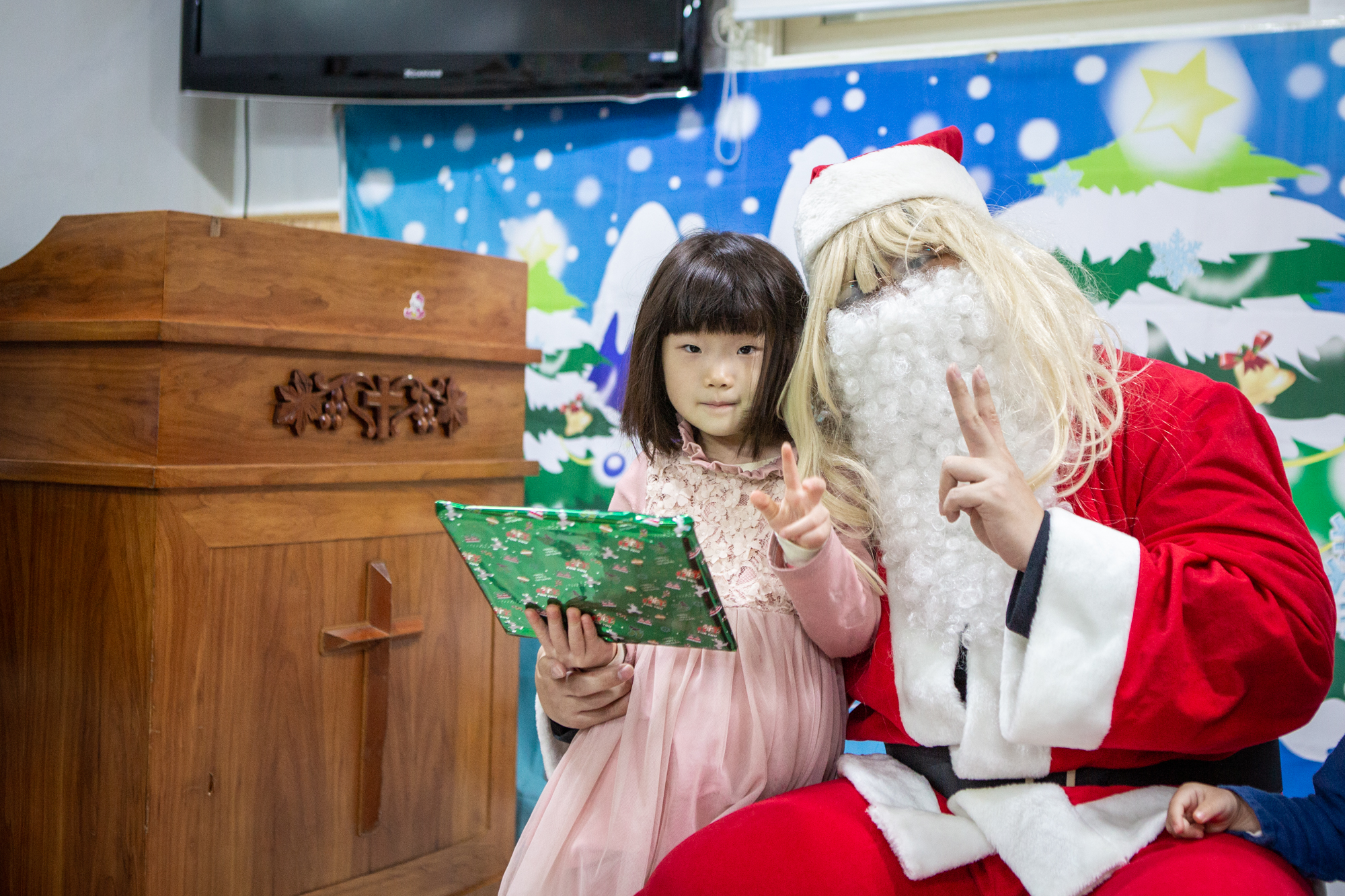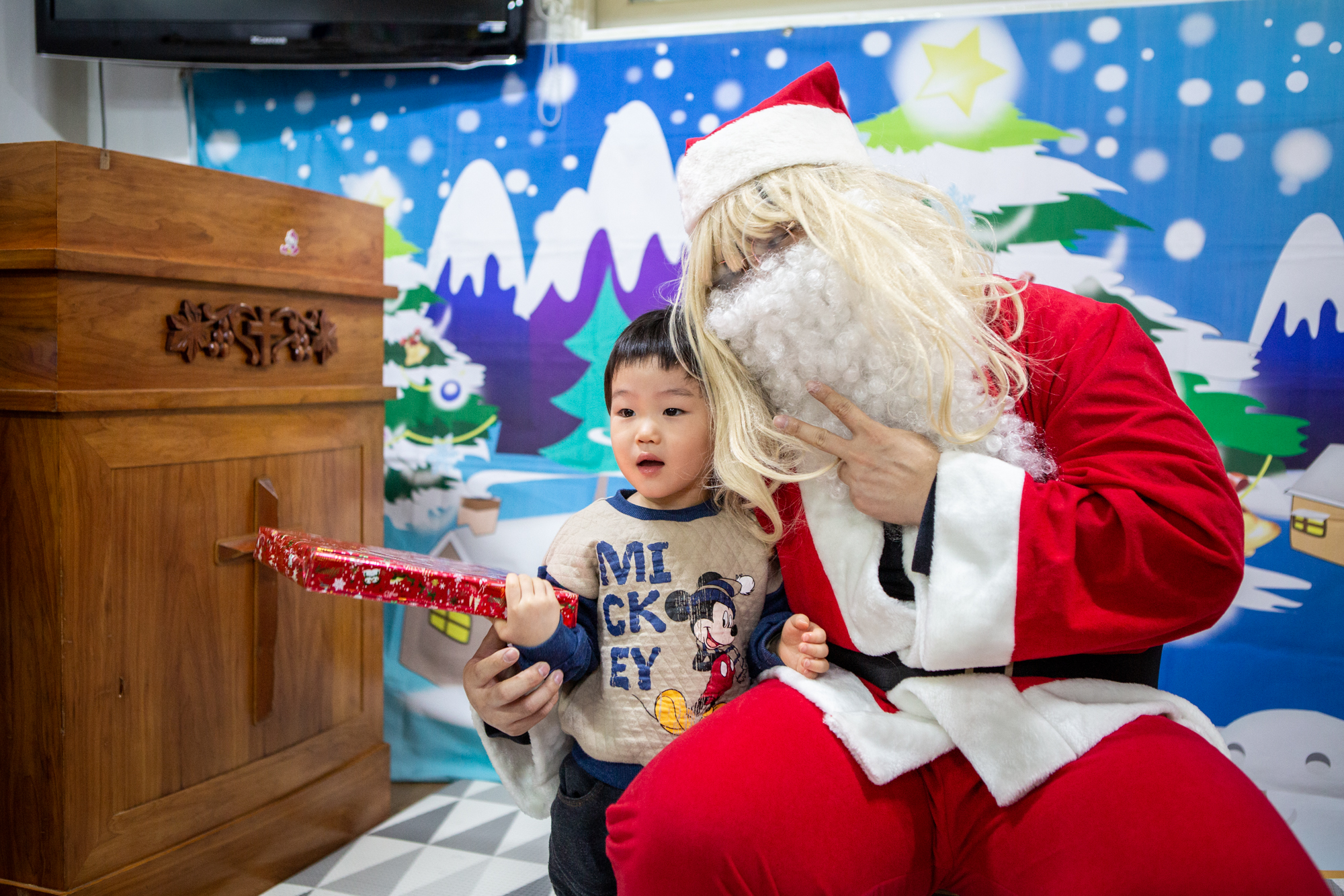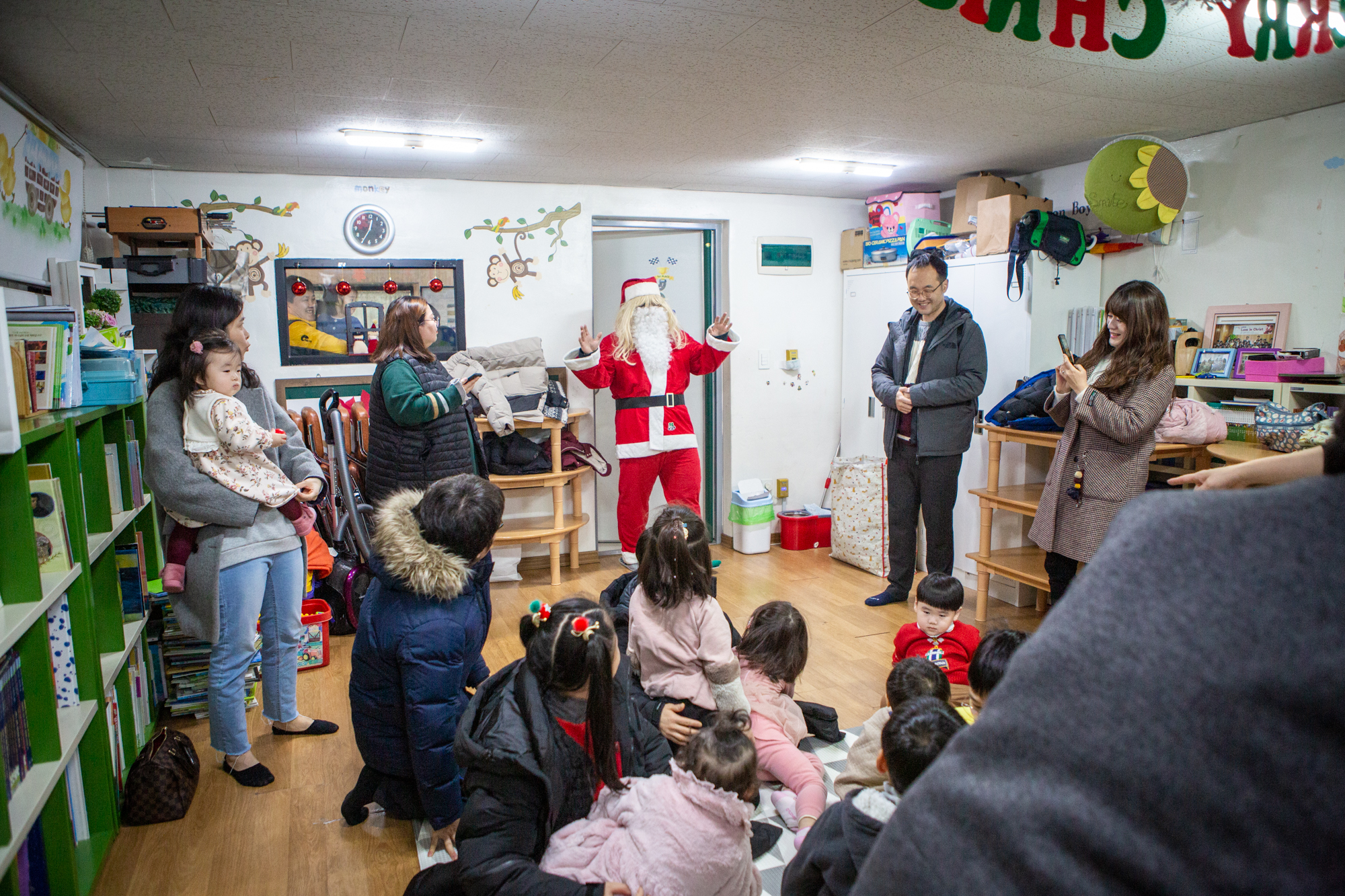 예배 후에는 주일학교에서는 산타 선생님(?)이 등장해서 아이들에게 선물을 나눠줬어요~