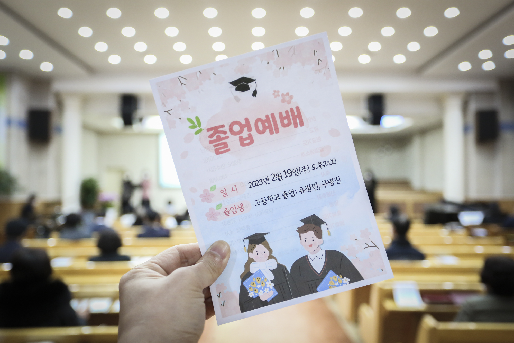2023 졸업예배 정지원 2023-02-19 추천 1 댓글 0 조회 587 http://jongambbc.onmam.com/bbs/bbsView/21/6212640 첨부파일 (0) 2023 졸업예배 2월 19일(주) 오후예배 때는 올해 졸업한 졸업생들과 졸업예배를 드렸습니다. 고등학교를 졸업한 유정민, 구병진 형제를 축복하며 축하합니다! 1